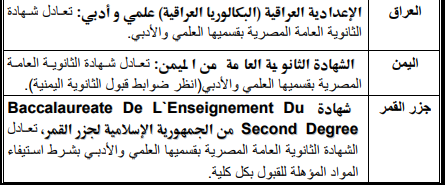 تنسيق الشهادات العراقية واليمنية وجزر القمر المعادلة لشهادة الثانوية العامة المصرية