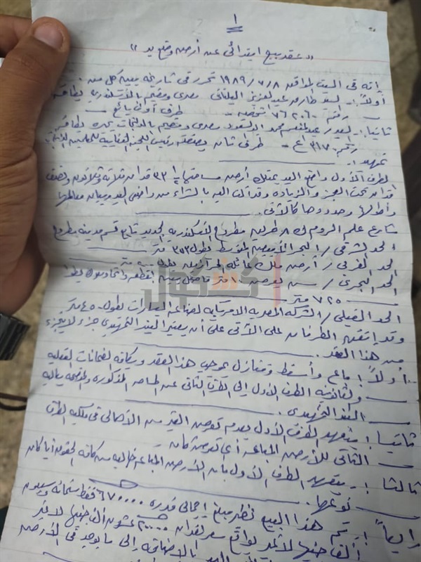 وكتابة العقد مع رئيس مجلس مدينة مطروح وإرساله إلى محافظة مطروح ولم يتم تسليم قطعة