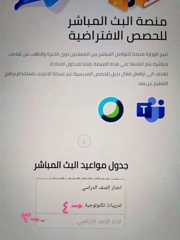 خطوات الدخول على التدريبات الإلكترونية لمنصة البث المباشر