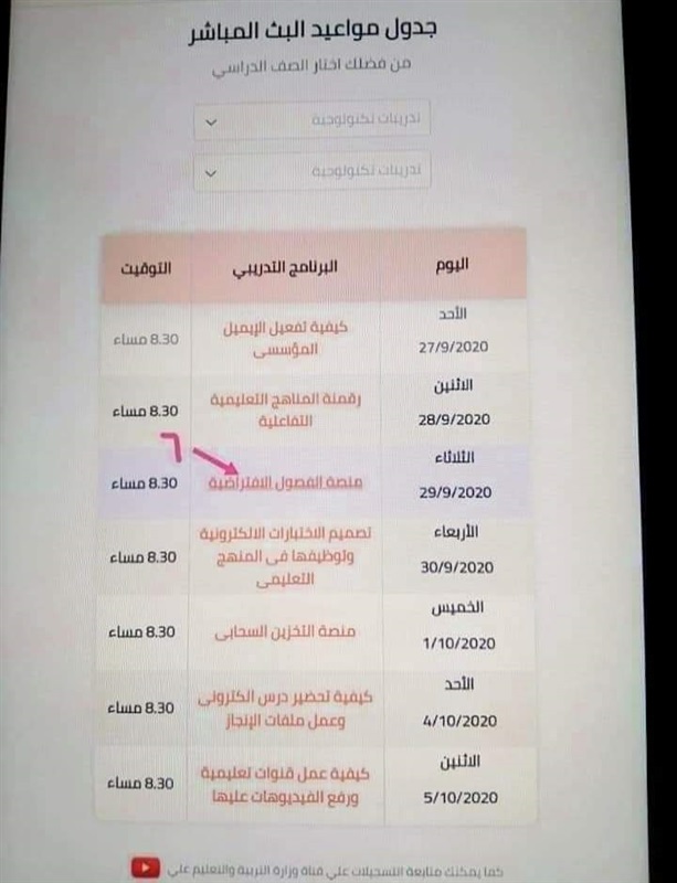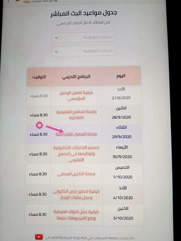 حددت وزارة التربية والتعليم والتعليم الفني؛ خطوات الدخول على التدريبات الموجودة على منصة البث المباشر للوزارة