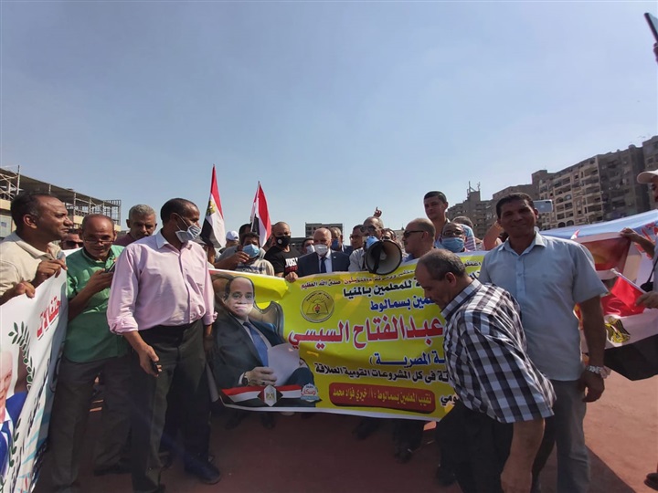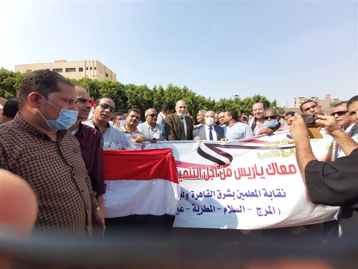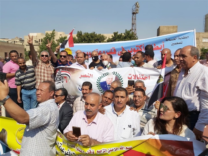 انطلقت المسيرة التي تنظمها نقابة المهن التعليمية بقيادة خلف الزناتي نقيب المعلمين ورئيس اتحاد المعلمين العرب، من المركز الرياضي بالعباسية في اتجاه النصب التذكاري للاحتفال بذكرى انتصارات أكتوبر المجيدة، وإعلان تأييد خطوات الرئيس عبدالفتاح السيسي في بناء الدولة الحديثة.