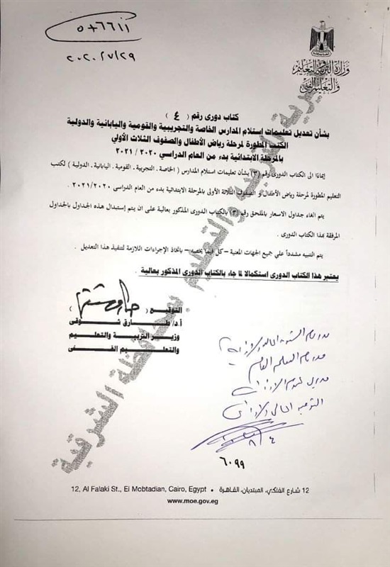 حيث قررت وزارة التربية والتعليم الغاء جداول الاسعار الواردة في الكتاب الدوري رقم 3 لسنة ٢٠٢٠.