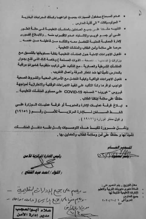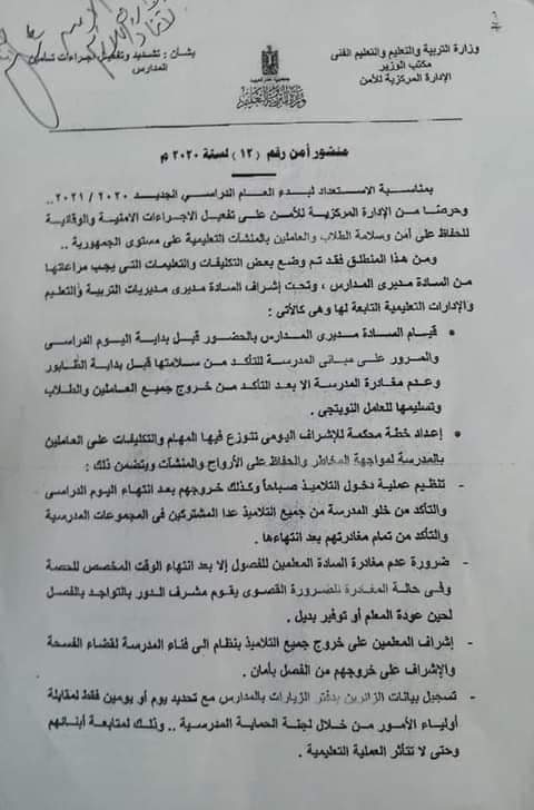 بشأن الإجراءات الأمنية.. تعليمات جديدة من «التعليم» لمديري المدارس "مستند"