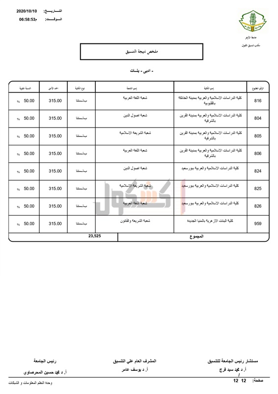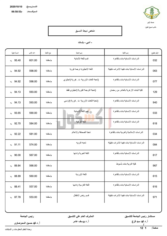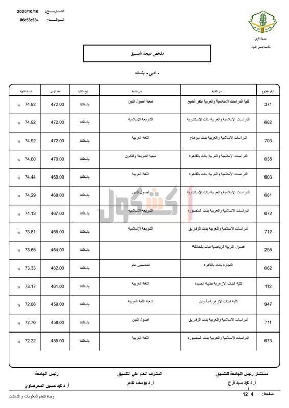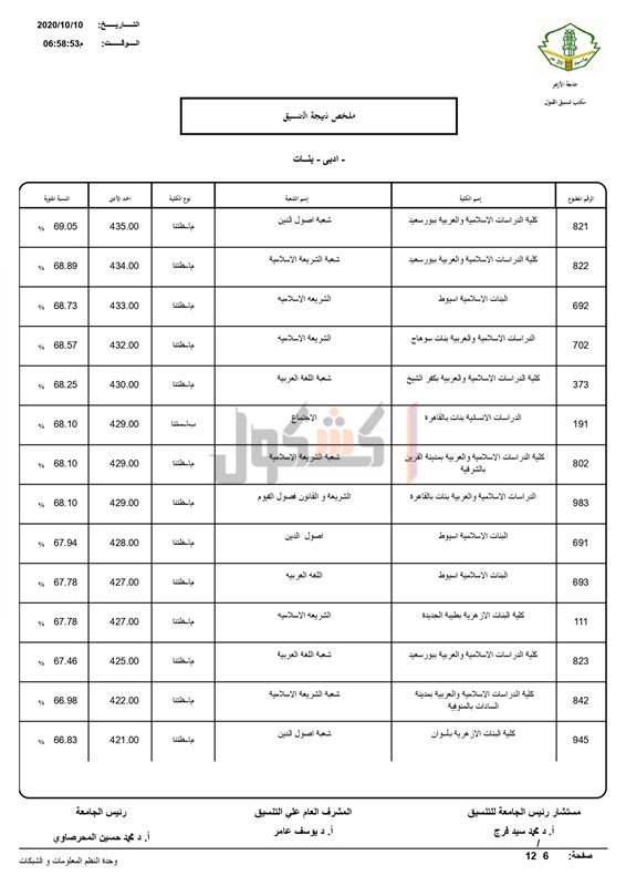 نتيجة تنسيق الأزهر 2020 كاملة للقسم الأدبي للبنات.. "مستند"