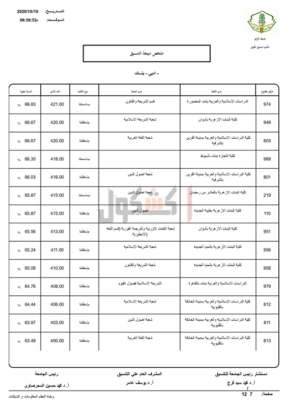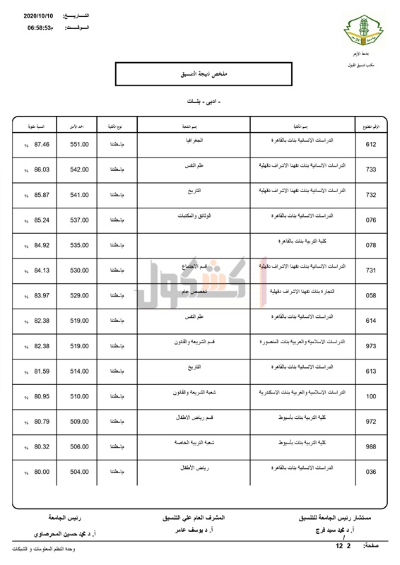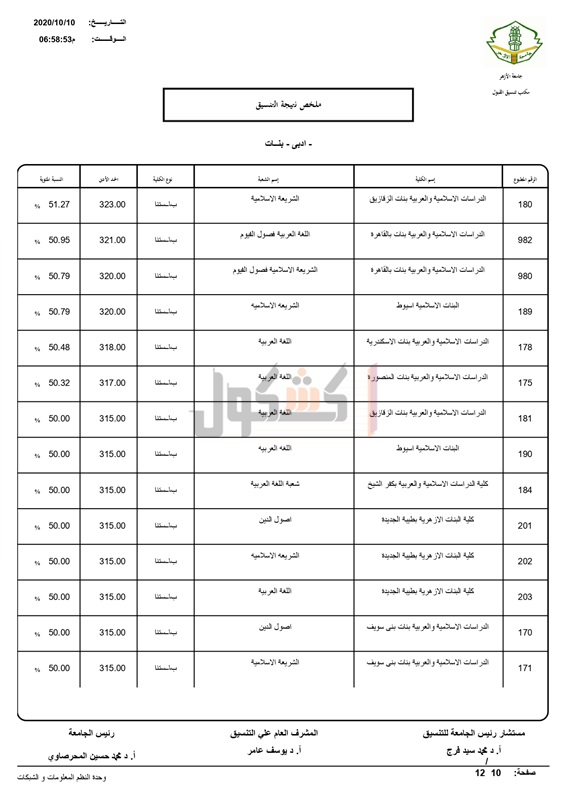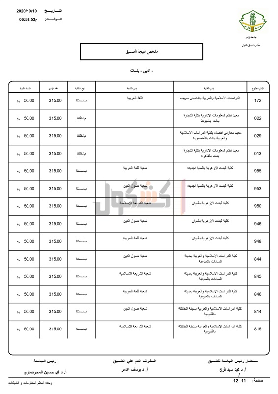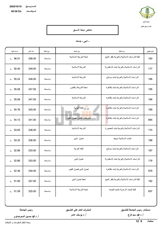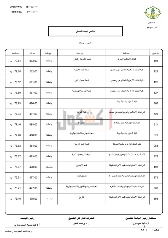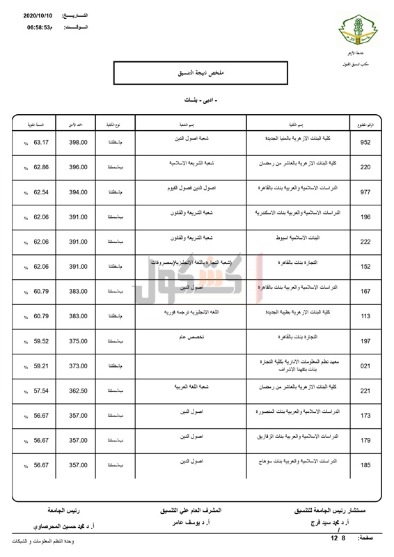 التنسيق أن الحد الأدنى للقبول بكليات البنات الأدبي فى تنسيق الثانوية الأزهرية
