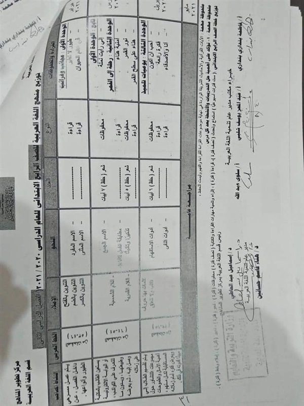 توزيع منهج اللغة العربية للمرحلة الابتدائية 2021