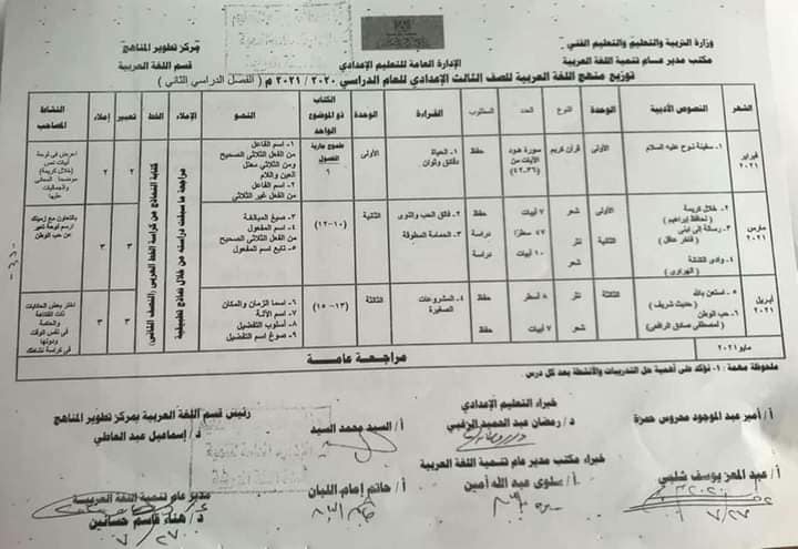 ويمكن معرفة توزيع منهج اللغة العربية لطلاب