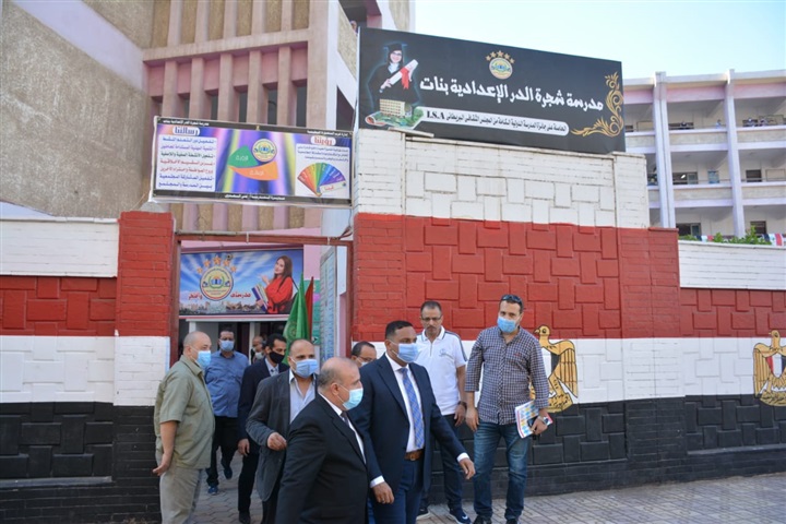 الإبتدائية بالمنصورة، حيث تفقد فصول رياض الأطفال ، والفصول الدراسية بها للاطمئنان