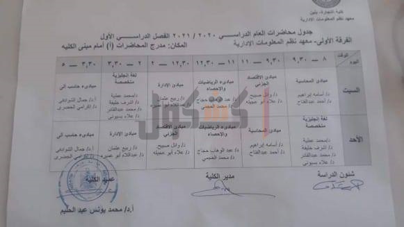 ينشر كشكول جدول العام الدراسي بمعهد نظم المعلومات الإدارية التابع لكلية التجارة بنين بجامعة الأزهر بالقاهرة.
