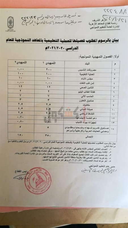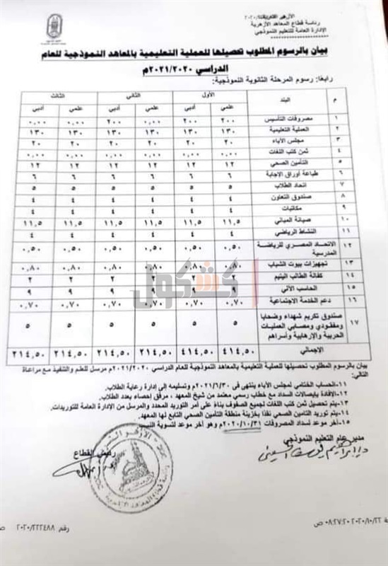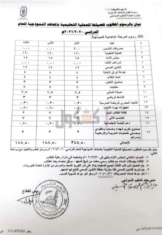 حصل "كشكول" على المصروفات الدراسية لجميع المراحل التعليمية بالمعاهد الأزهرية النموذجية.