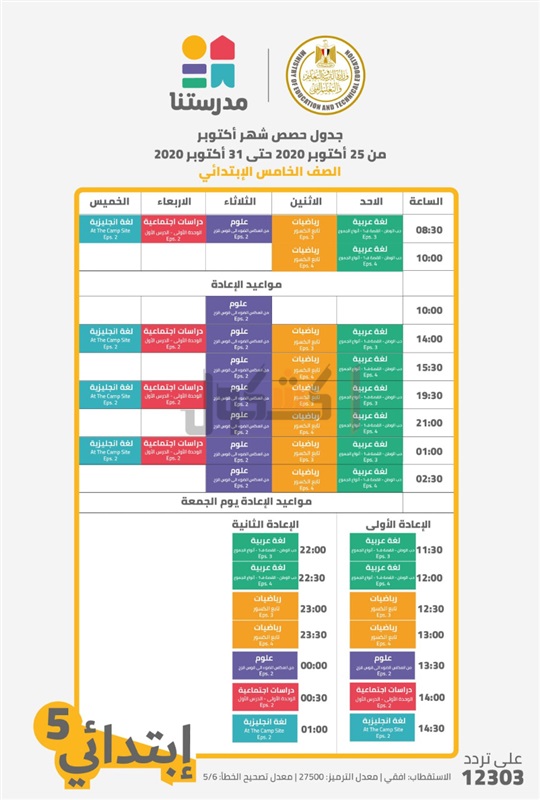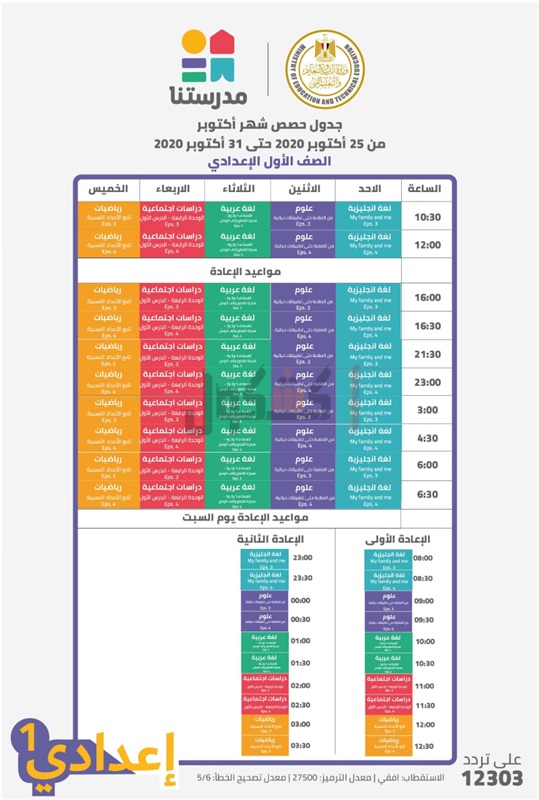 جدول الأسبوع الثاني لقناة "مدرستنا" من الصف الرابع الابتدائي حتى الثالث الإعدادي
