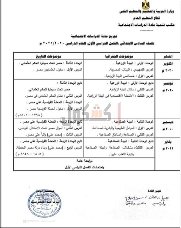 منهج الصف السادس الابتدائي الترم الأول 2020