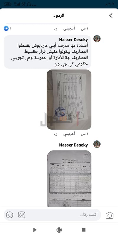 وقال "شوقي"، على أحد جروبات الواتس آب، التي تضم عددًا من أولياء الأمور، إنه يمكن تقسيط المصاريف خلال العام الدراسي على دفعتين أو أربع دفعات، على أن يتم استكمالها قبل نهاية العام الدراسي، للتيسير على أولياء الأمور.