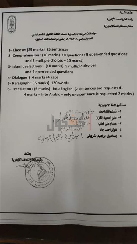 ننشر مواصفات امتحان اللغة الإنجليزية للثانوية الأزهرية