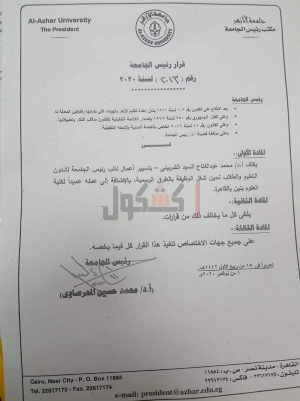 تأكيدا لـ«كشكول».. الشربيني نائبًا لرئيس جامعة الأزهر لشئون التعليم والطلاب