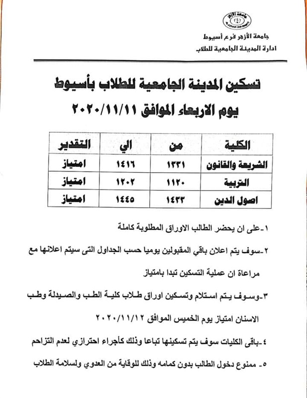 صرح ربيع هاشم عبدالعال رئيس الإسكان بالمدينة الجامعية للطلاب بأسيوط، أنه بناء على تعليمات الدكتور محمد عبد المالك نائب رئيس جامعة الأزهر للوجه القبلي، والمحاسب أحمد عباس الأمين العام المساعد لفرع الجامعة بأسيوط وحسام مهران مدير المدن الجامعية للوجه القبلى.