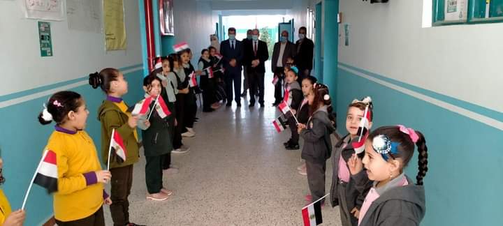 حيث استقبل أطفال المدرسة وكيل وزارة التربية والتعليم بالفيوم حاملين علم مصر، ورددوا الأغاني الوطنية.