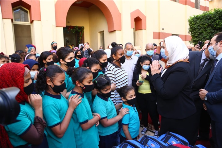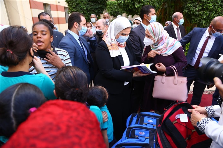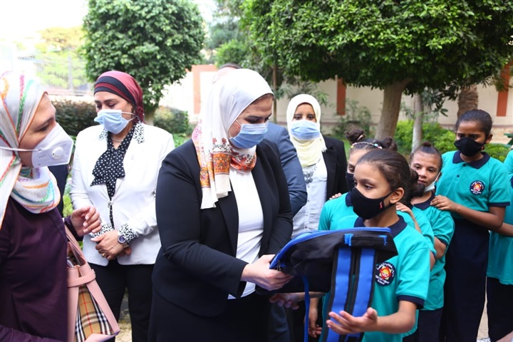 سلمت نيفين القباج وزيرة التضامن الاجتماعي فتيات مؤسسة الفتيات بالعجوزة الشنط المدرسية التي تحملت تكلفتها الوزارة، والكتب الدراسية المهداة من دار "نهضة مصر".