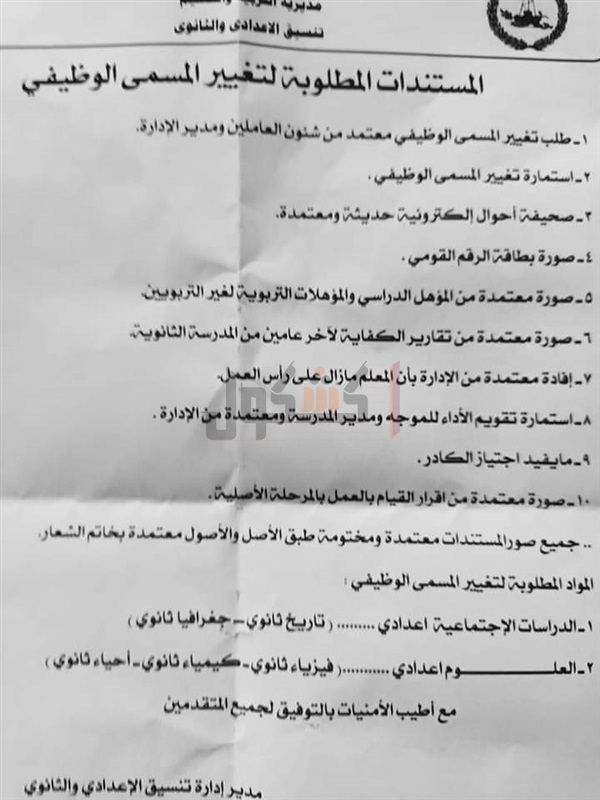 المواد المطلوبة لتغيير المسمي الوظيفي