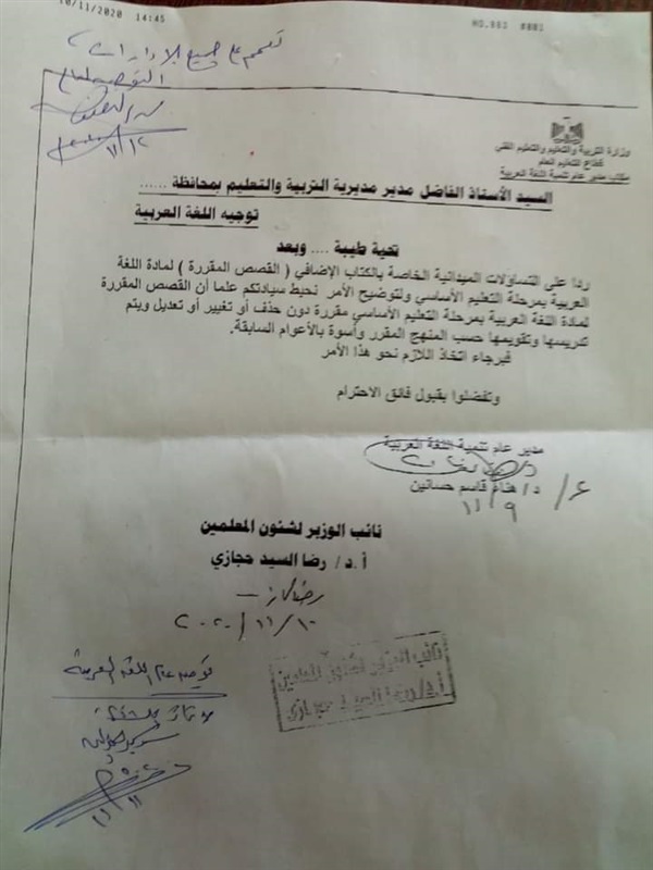 وتم تعمييم الخطاب علي المديريات والادارات التعليمية بتاريخ 10 نوفمبر 2020؛ لتطبيق ما جاء فيه خلال العام الدراسي الحالي 2020/2021.