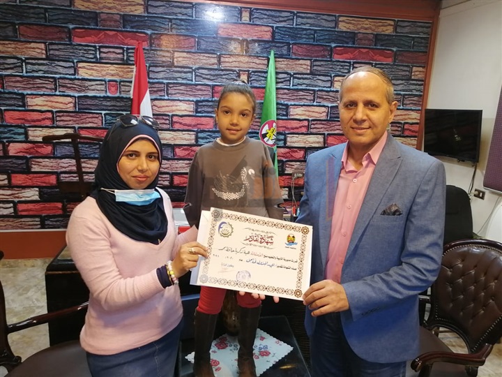 وتم تكريم التلميذة رحمة عزت عبدالله بمكتب وكيل الوزارة، ومنحها شهادة تقدير وذلك لموهبتها الفنية المتميزة.