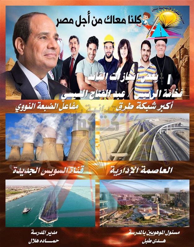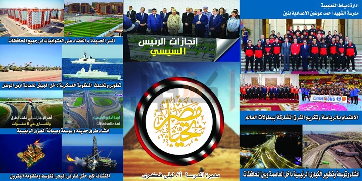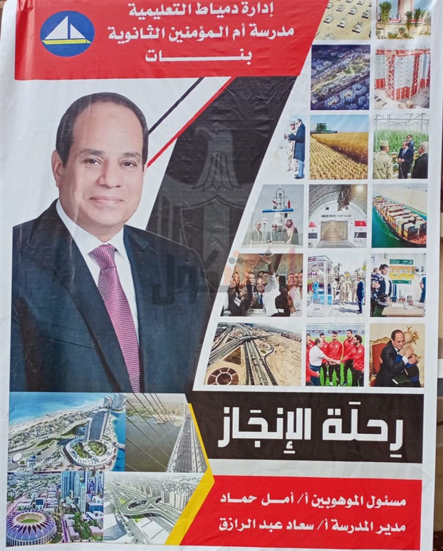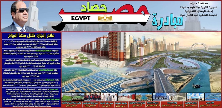 وفي تجربة رائدة قامت بها مديرية التربية والتعليم بدمياط، ايمانا بدور التعليم في تربية النشئ على القيم الوطنية، بإطلاق مسابقة بين الطلاب لحصر المشروعات القومية وإنجازات الرئيس عبد الفتاح السيسي في شكل جداريات يصممها الطلبة اليكترونيا، والتصميمات الفائزة يتم طباعتها وتعليقها في المدارس.