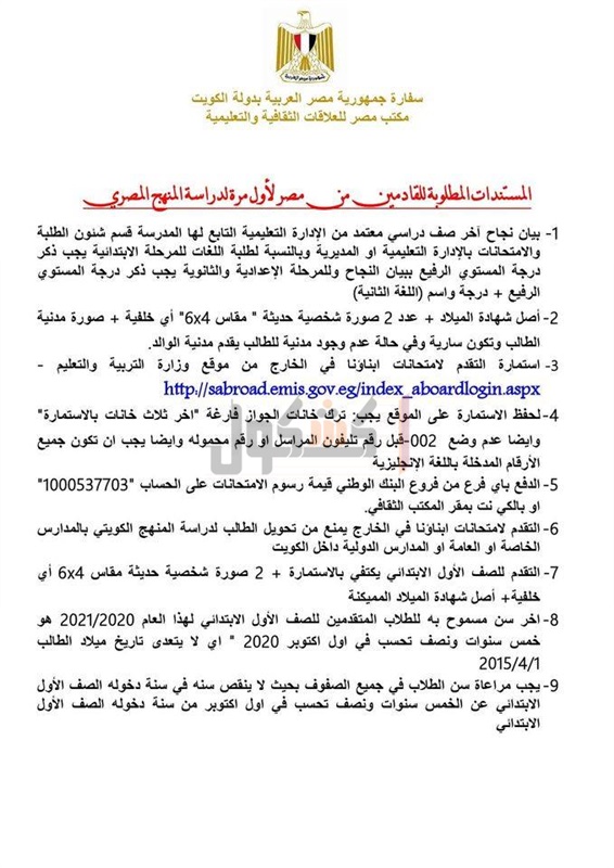 للمصريين..«الكويت» تعلن المستندات المطلوبة للالتحاق بنظام أبناء الخارج
