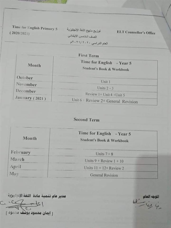 2020-2021، وتوزيع منهج اللغة الانجليزية 2020 حيث أصدر مكتب كل مستشار للمادة تفاصيل