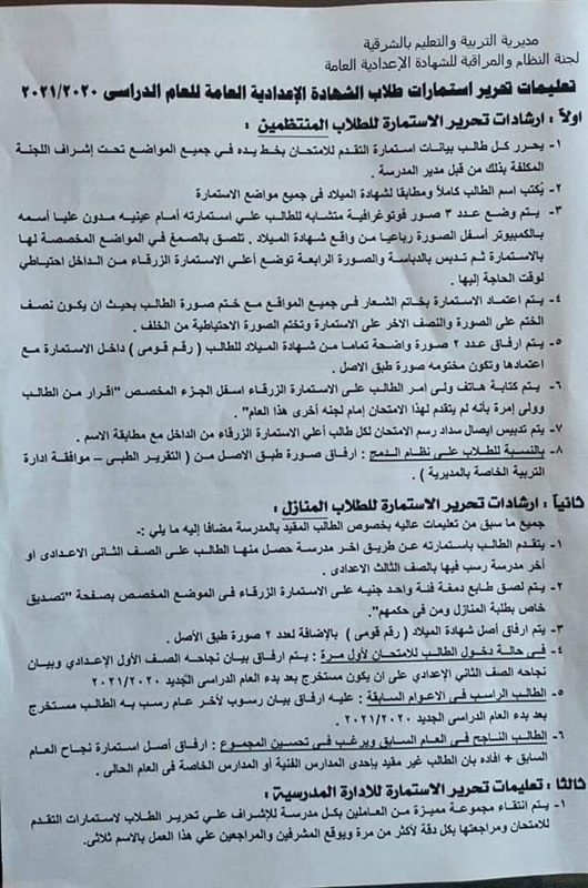 لطلاب الشهادة الإعدادية.. أهم الإرشادات لكتابة استمارة دخول الامتحانات