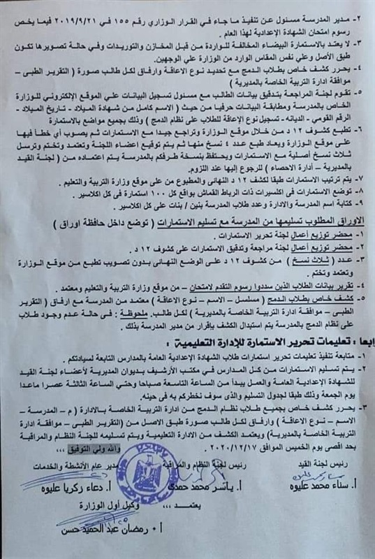 1) يحرر الطالب جميع بياناته بالاستمارة تحت إشراف لجنة مكلفة من المدرسة