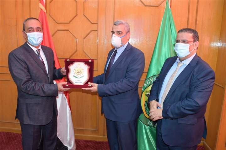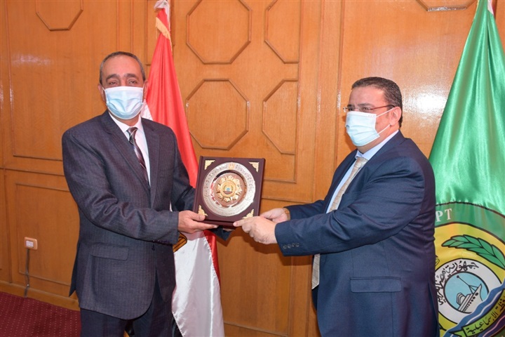 اللقاء حرص اللواء أركان حرب شريف فهمى بشارة على تقديم درع المحافظة لرئيس الجامعة