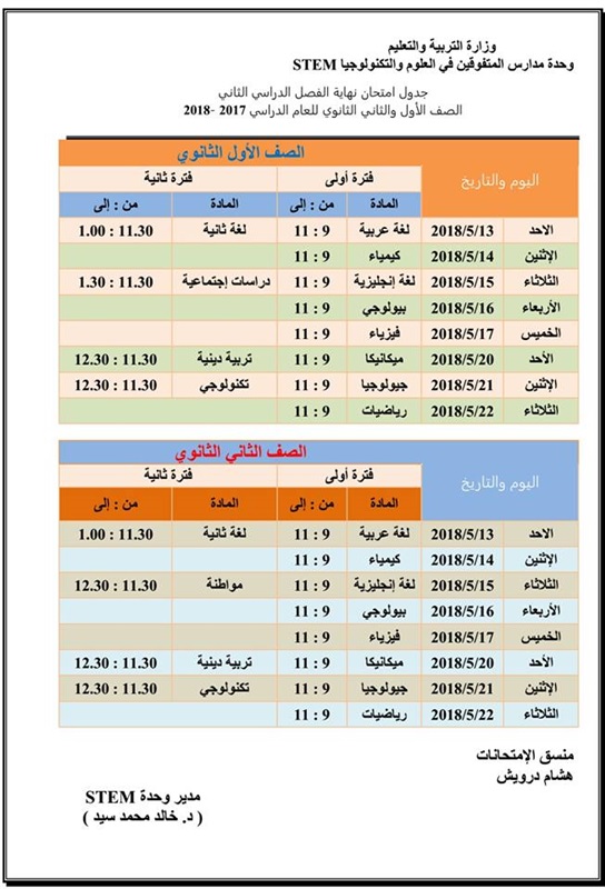 أعلنت وحدة مدارس المتفوقين للعلوم والتكنولوجياstem ، جداول امتحانات الصف الأول والثاني الثانوي في 11 مدرسة تتبع الوحدة علي مستوي محافظات مصر.