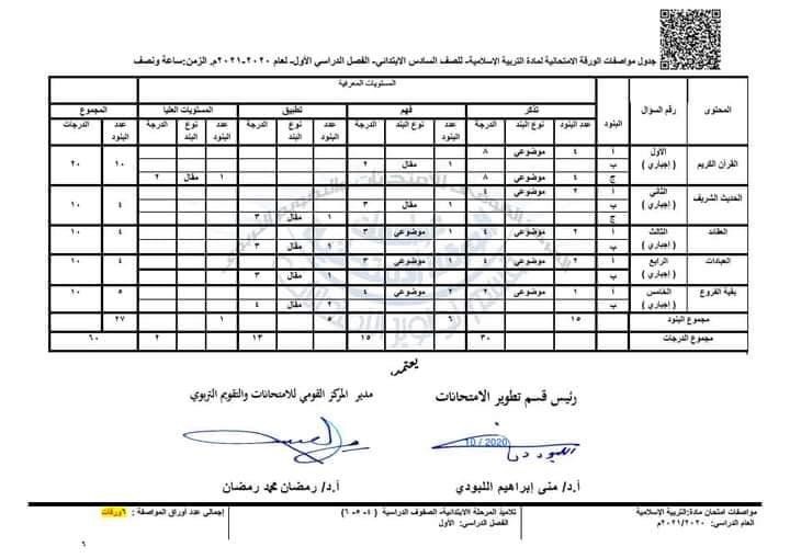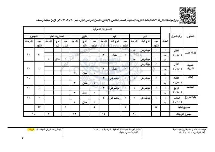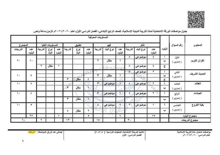 حتي السادس الابتدائي في مادة التربية الإسلامية للعام الدراسي الحالي 2020/ 2021م.