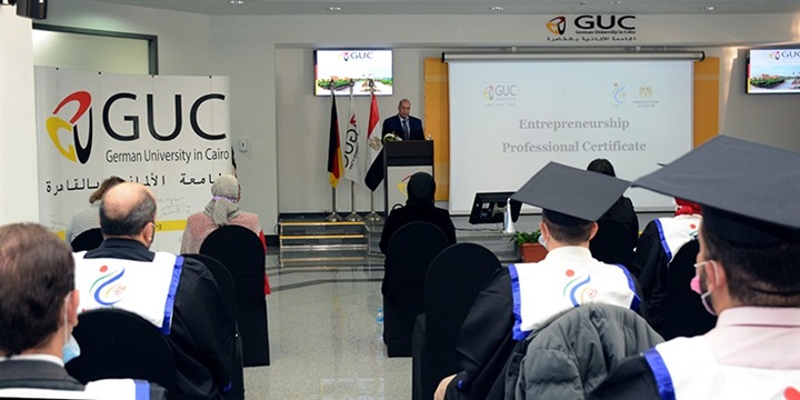 احتفت الجامعة الألمانية بالقاهرة بتسليم متدربي الدفعة الأولى ببرنامج الشهادة المهنية في ريادة الأعمال والبالغ عددهم 100 متدرب شهادات إتمام البرنامج ، والذي تم تنفيذه بالتعاون فيما بين الجامعة ووزارة التخطيط والتنمية الاقتصادية ممثلة في مشروع رواد 2030 و جاء طبقاً لمذكرة التفاهم التي تم توقيعها بين الدكتور ياسر جمال حجازي رئيس الجامعة و الدكتورة غادة خليل مدير المشروع خلال شهر فبراير الماضي 2019 .