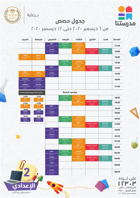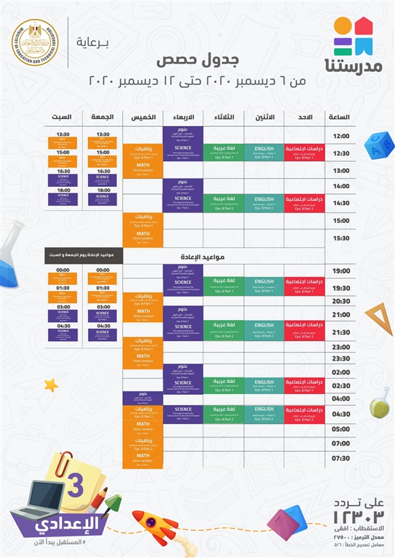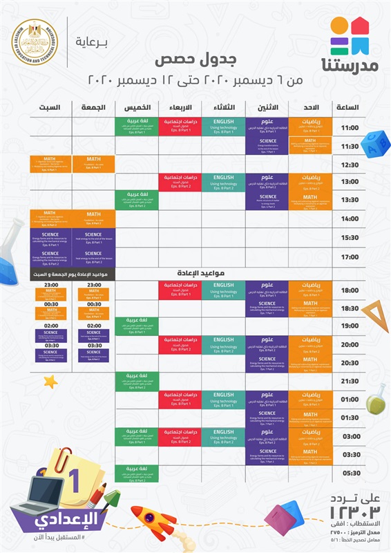 الإعدادية، مواعيد عرض البرامج التعليمية للأسبوع الثامن الخاص بمناهج المرحلة الإعدادية