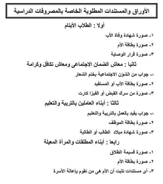 ننشر المستندات المطلوبة للفئات المعفاه من المصروفات المدرسية
