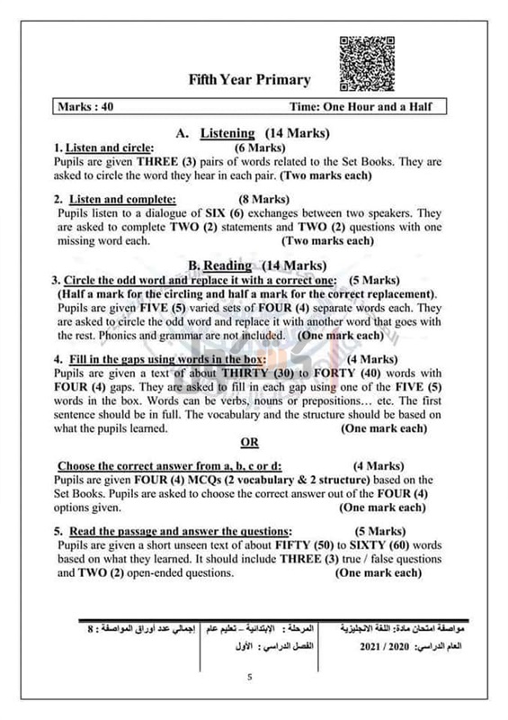 أعلنت وزارة التربية والتعليم والتعليم الفني، متمثلة في مكتب مستشارة اللغة الإنجليزية، مواصفات امتحان اللغة الإنجليزية لطلاب أولى وتانية ثانوي للعام الدراسي الحالي 2020 / 2021.