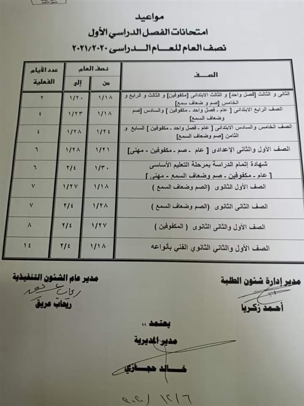 أصدرت مدير مديرية التربية والتعليم بمحافظة الجيزة، جدول امتحانات الفصل الدراسي الأول للعام الدراسي الحالي 2020/2021.