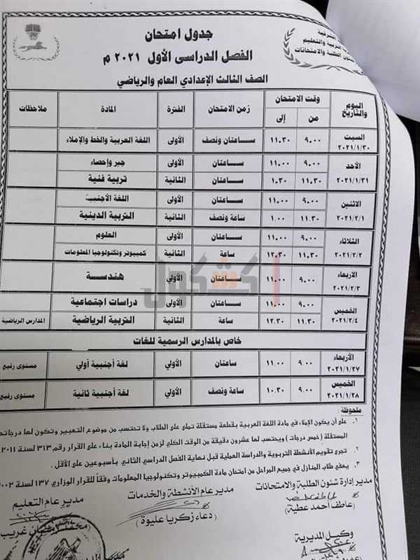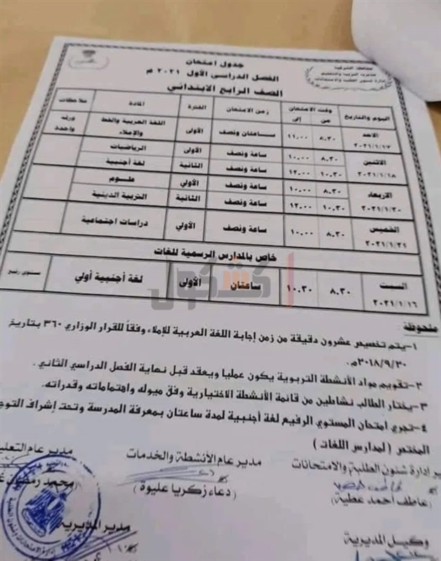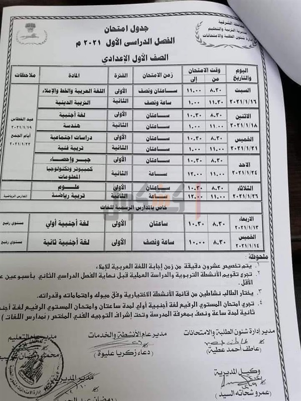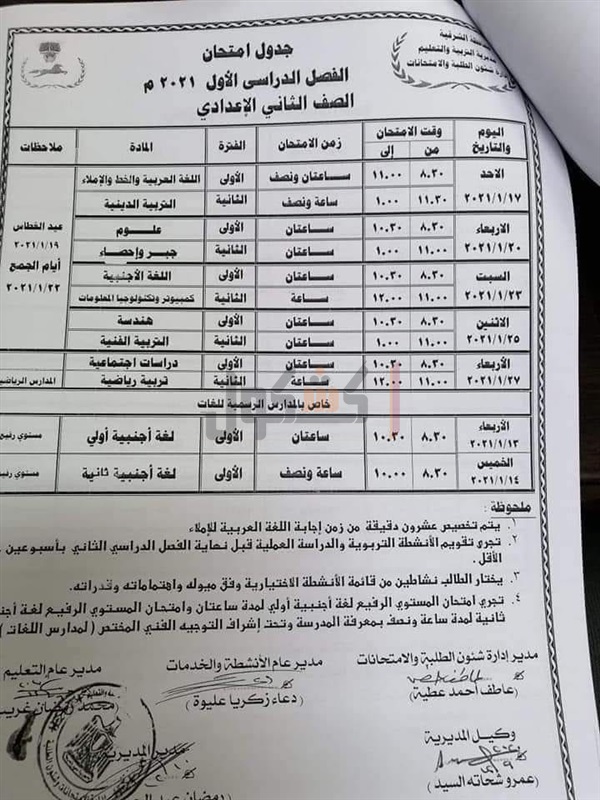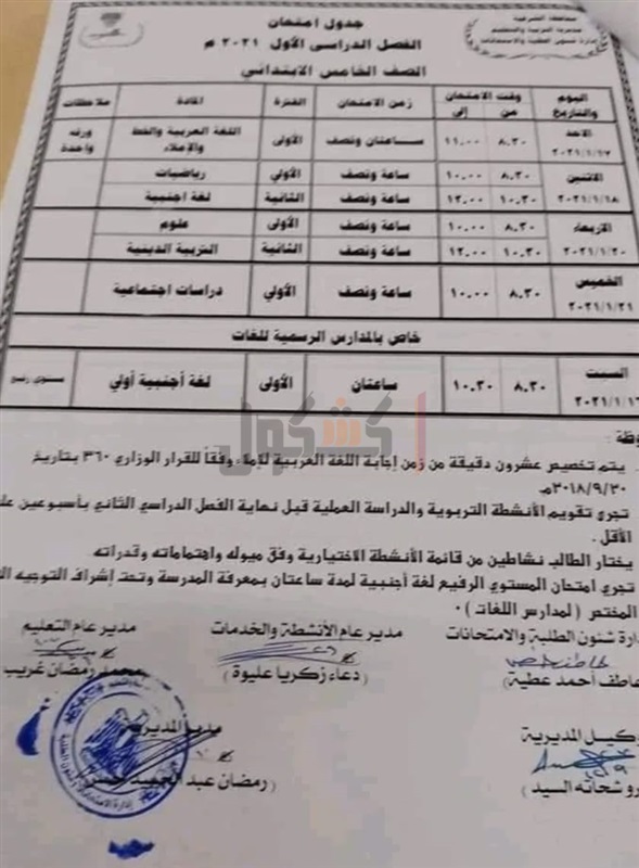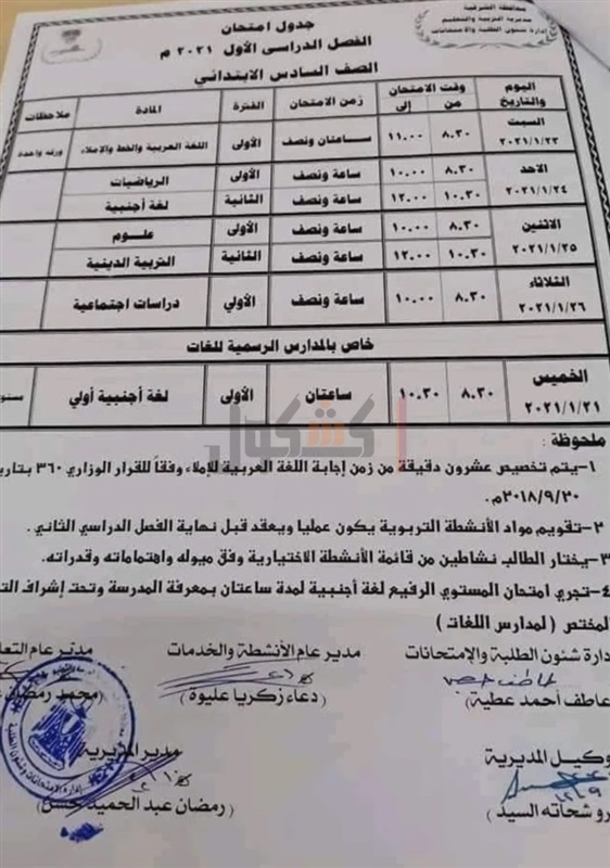 لطلاب المرحلة الابتدائية والاعدادية.. جداول امتحانات الفصل الدراسي الأول بالشرقية