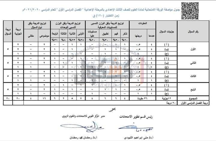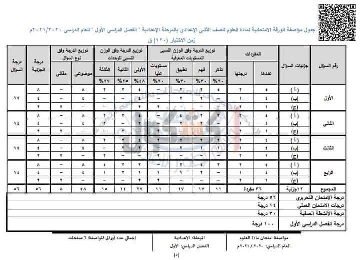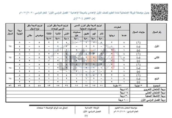 أعلنت وزارة التربية والتعليم والتعليم الفني، خلال منشور تم تعميمه على جميع مديريات التربية والتعليم والتعليم الفني، التابعة لها بالمحافظات عن مواصفات الورقة الامتحانية لطلاب المرحلة الإعدادية من الصف الأول حتي الثالث الاعدادي، بمادة العلوم للعام الدراسي الحالي 2020/ 2021م.