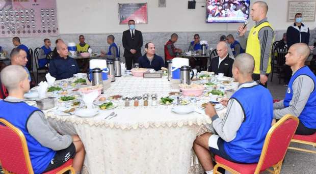 «السيسي» يشارك طلبة الكلية الحربية الأنشطة الصباحية ويتناول الإفطار معهم.. صور