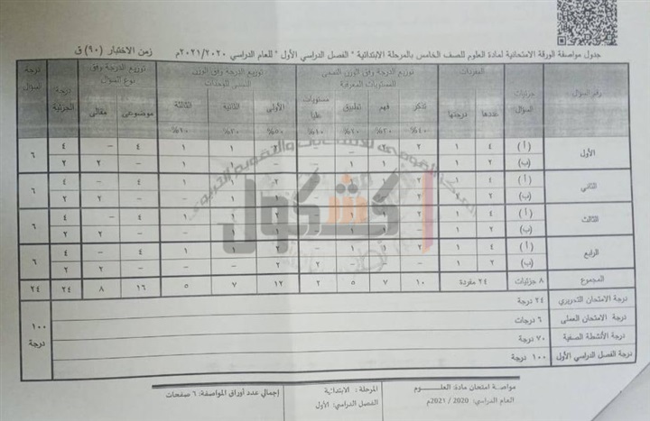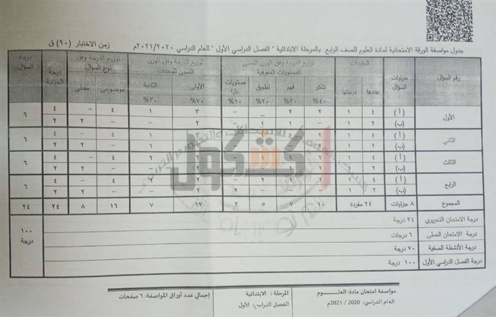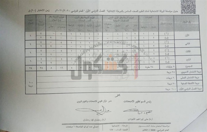 «التعليم» تعلن مواصفات امتحان علوم المرحلة الابتدائية