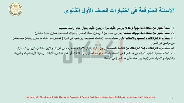 دليل طلاب أولي ثانوى لامتحان ديسمبر الإلكتروني «صور»