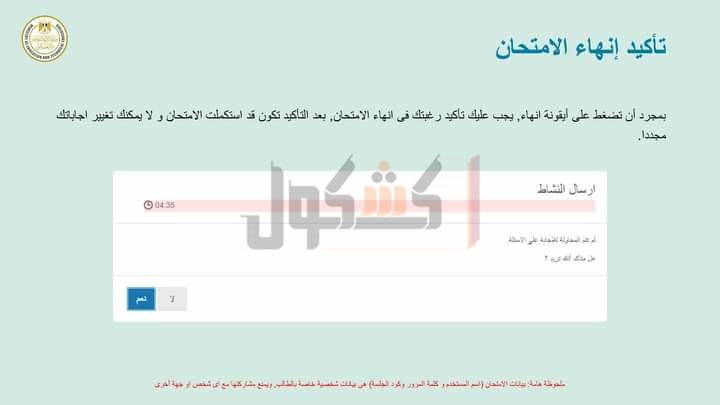 تجدر الاشارة إلي أن وزارة التربية والتعليم والتعليم الفنير ارسلت أمس اسم المستخدم وكلمة المرور واكواد الامتحان لطلاب أولي ثانوى؛ حيث يتاح الامتحان الإلكتروني التدريبي من الساعة التاسعة صباحاً حتى التاسعة مساءا.
