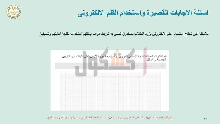 حيث يؤدي طلاب أولي ثانوى الامتحان لتجربة الشبكات والتدريب علي نظام الاسئلة الجديدة التي تقيس مهارات غير الحفظ والتلقين؛ بل مهارات التفكير والقدرة علي المشكلات؛ من خلال الامتحان open book الكتاب المفتوح.