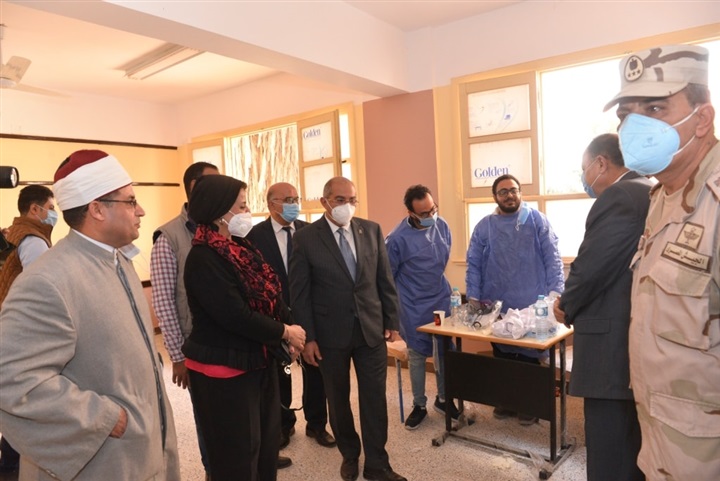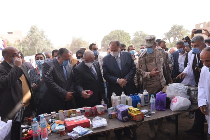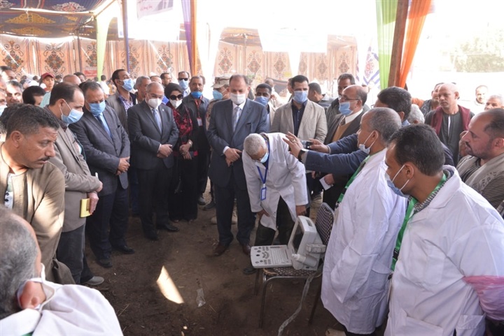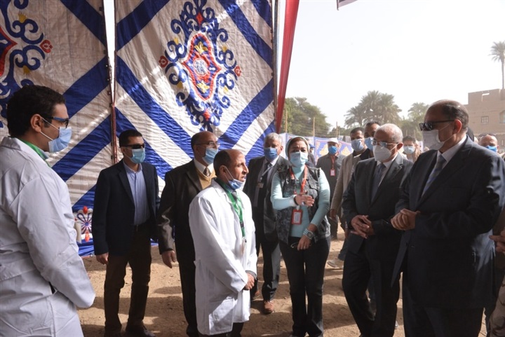 الجولة بتفقد القافلة الطبية والتي تأتى تحت إشراف كلية الطب وضمت عيادات الباطنة
