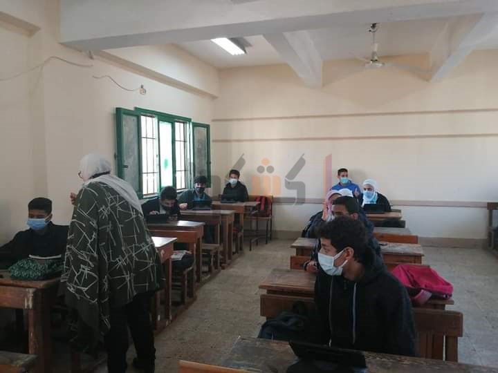 طلاب أولى ثانوي يؤدون امتحان اللغة العربية إلكترونيًا «صور»
