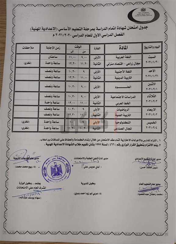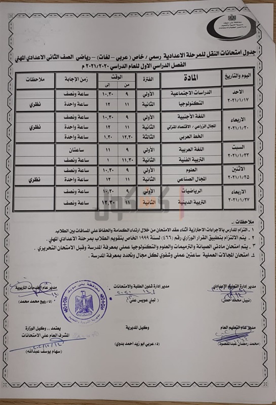 المهنية يوم السبت 2 يناير وتنتهى الخميس 14 يناير، بينما تبدأ امتحانات المواد العملية