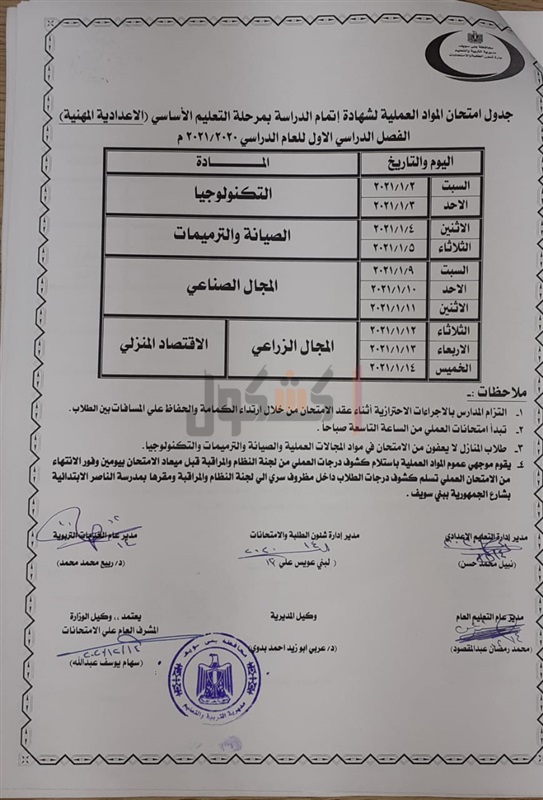 محافظ بني سويف يعتمد جداول امتحانات النقل والإعدادية الترم الأول