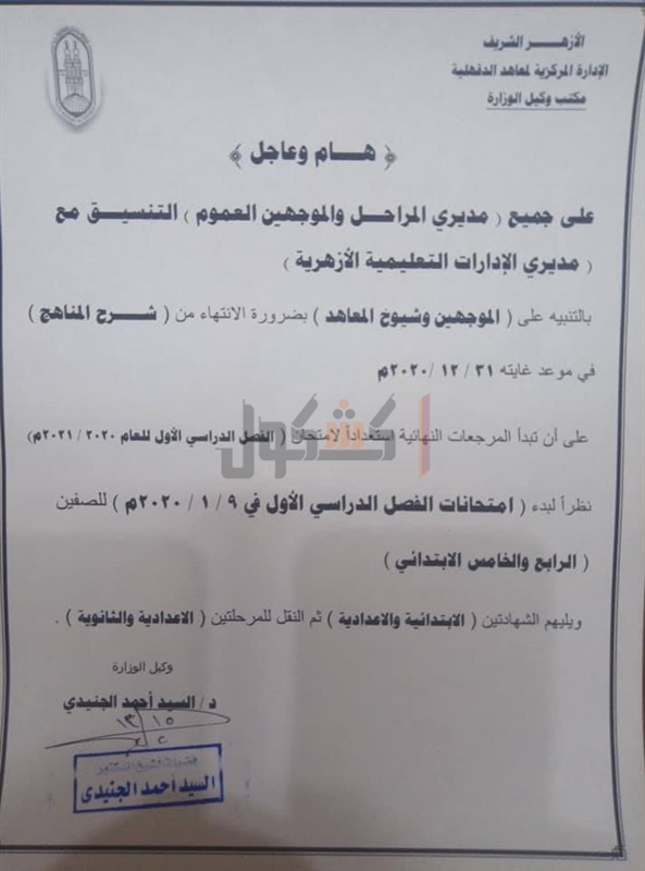 المعاهد الأزهرية يقرر إنهاء الفصل الدراسي الأول 31 ديسمبر